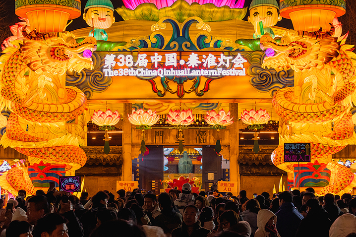 第38届秦淮灯会花灯璀璨人潮汹涌(视觉中国)