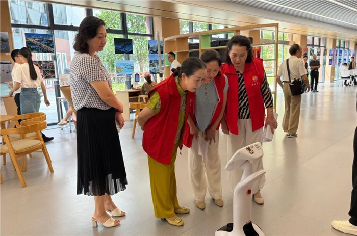 另一边,网红机器人“藕爷”忙得不亦乐乎。这款由优必选设计、主打娱乐陪伴的康养机器人深受老人的喜爱。“藕爷藕爷,请带我去护士站!”“好的,请跟我来。”“藕爷藕爷,请给我跳个舞!”“好的,这就给您跳个嘟拉舞!”只见它扭动着双臂,跳起了赛博舞蹈,一群坐在轮椅上的老人纷纷围到它的身边,双手跟着它一起舞动起来。