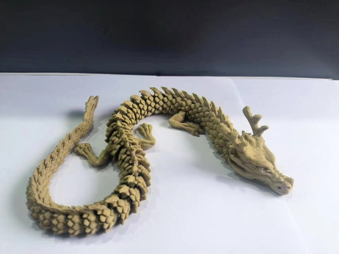 有一次,他用村里的秸秆打印了一个能活动的中国龙玩具,拿给村书记看时,对方惊讶得眼睛都睁大了:“乖乖,这真是秸秆做的?还能动?”