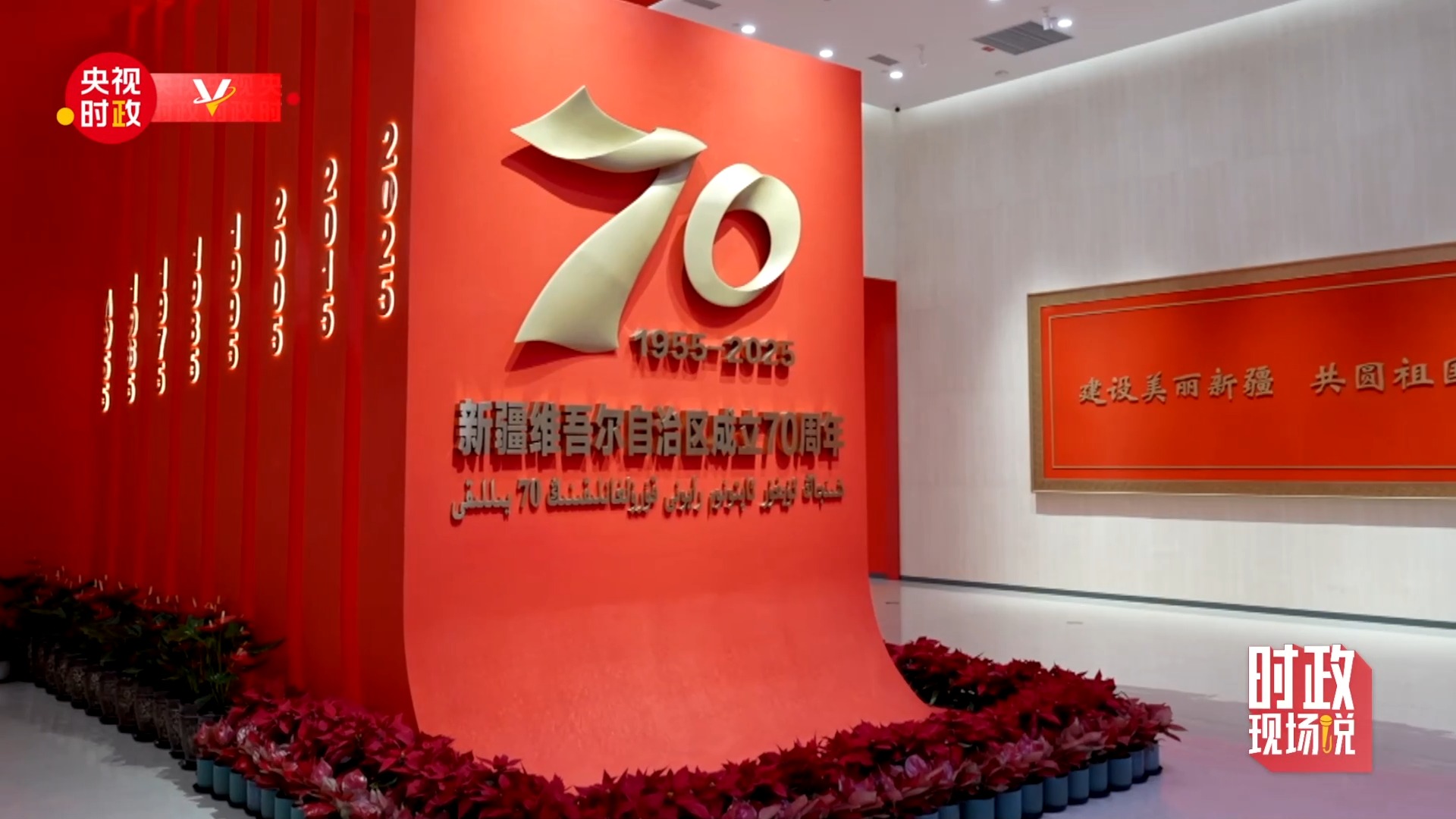 该展览全景展现了70年来在中国共产党坚强领导下、在全国各地大力支援下,新疆各族人民团结一心、艰苦奋斗、顽强拼搏取得的辉煌成就。