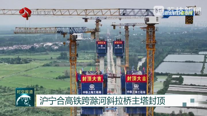 【沪宁合高铁跨滁河斜拉桥主塔封顶】