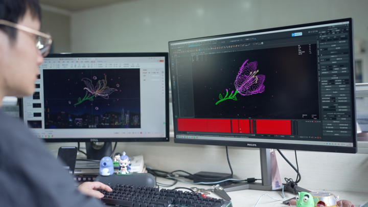 一场完整的无人机编队表演需要经过四个关键步骤:创意设计、轨迹编程、环境检测和现场调度执行。在这个流程中,飞行规划员扮演着核心角色,需要与客户经理、平面设计师、气象保障组、飞控手等多个岗位紧密协作。“他主要是作为一个编程的角色”,王聪解释道,“需要具备美学素养和设计能力,利用类似玛雅这样的三维软件进行空间创意,同时要有极强的细致性和严谨性。”