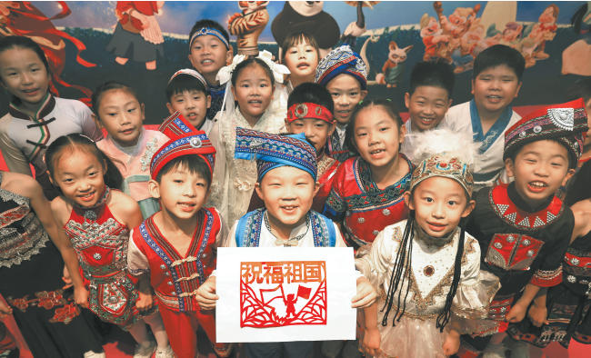 9月25日,在湖北省武汉市,未来实验小学学生开展迎国庆主题活动。