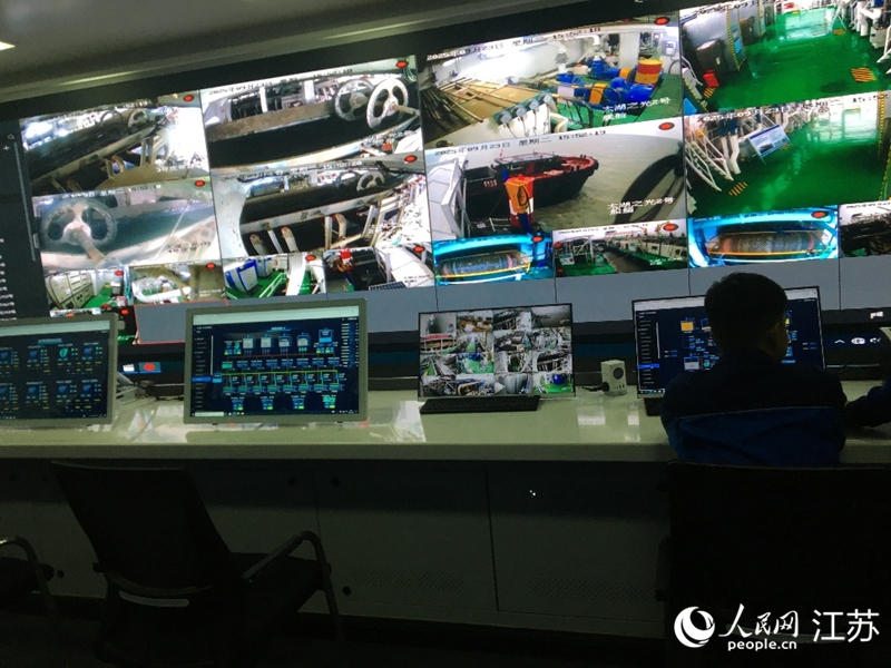 透过监控大屏可实时查看“太湖之光”作业情况。人民网记者 俞杨摄