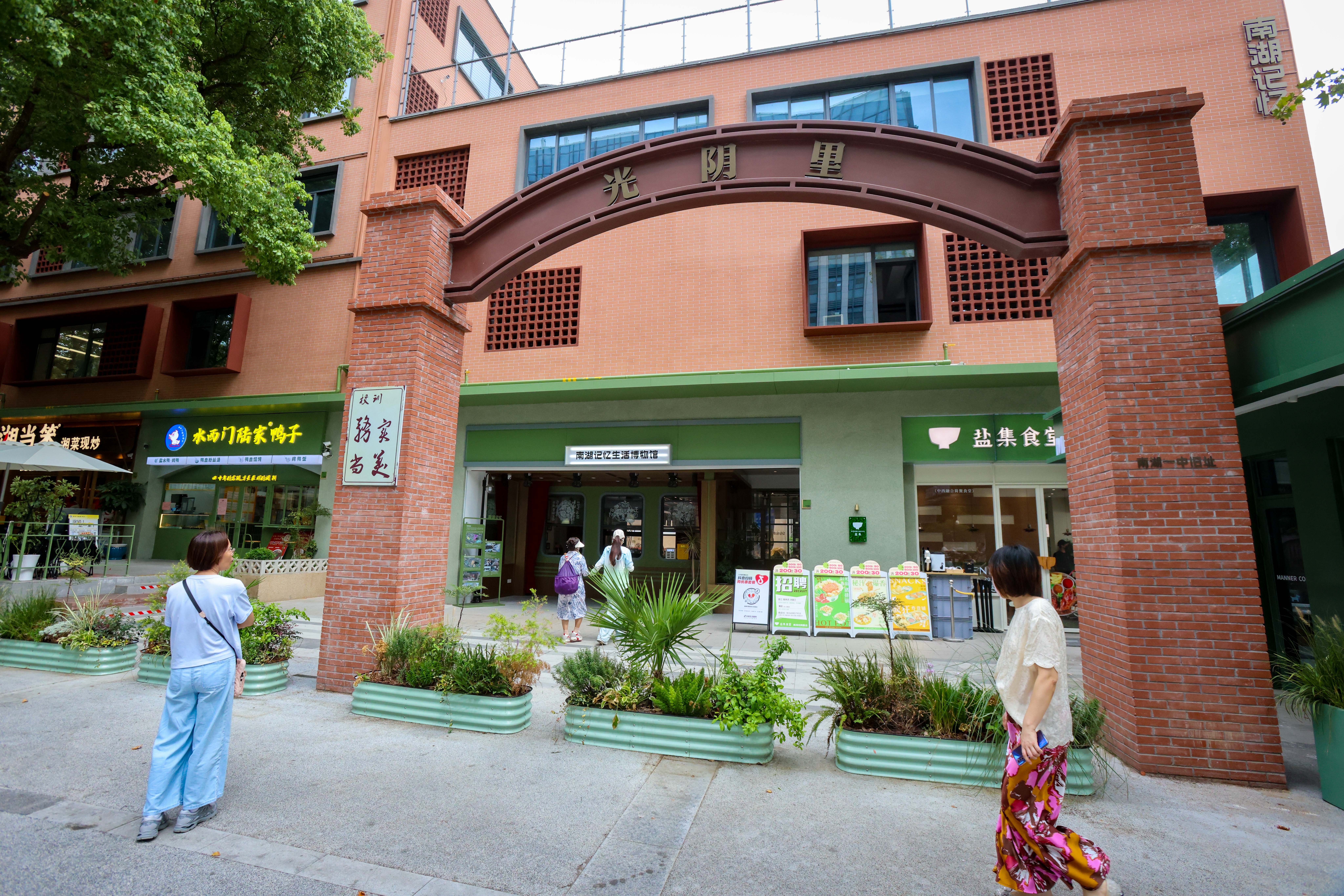 走进“光阴里”内部,原先街边的小卖部、理发店被搬进了生活博物馆,老物件成为可以触摸、可以合影的时光印记;推开墨绿色木门,青灰色石砖铺满路面,一间间教室被改造成烘焙坊、绿植馆、艺术场等创新创业空间,迎接市民游客前来打卡。