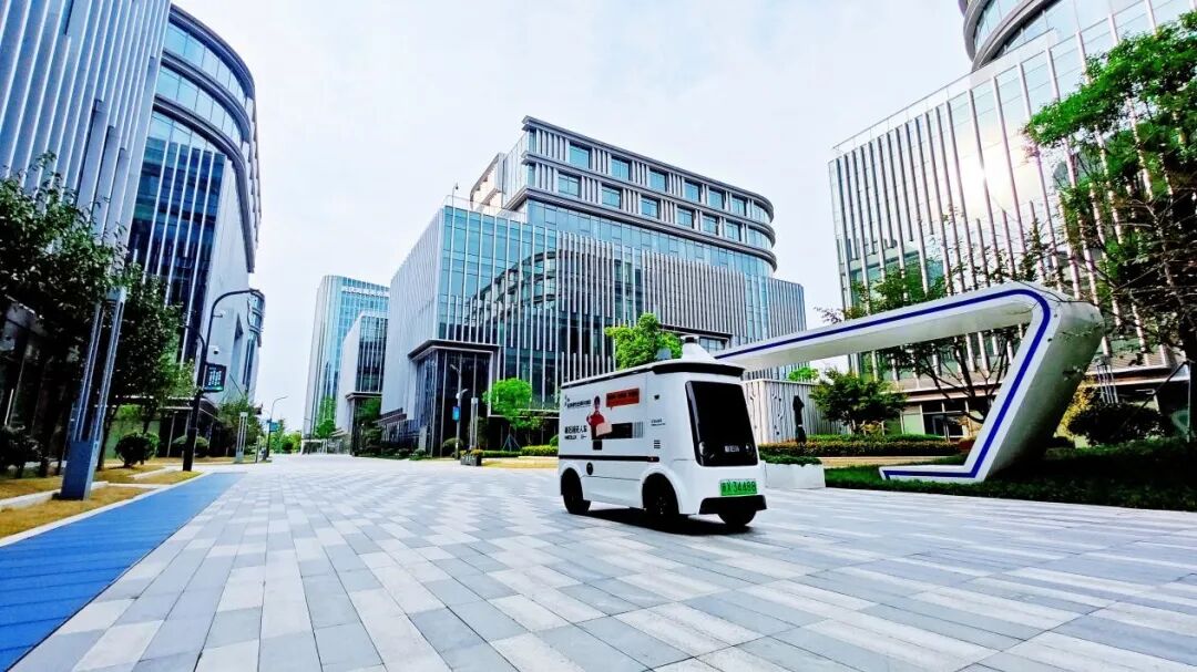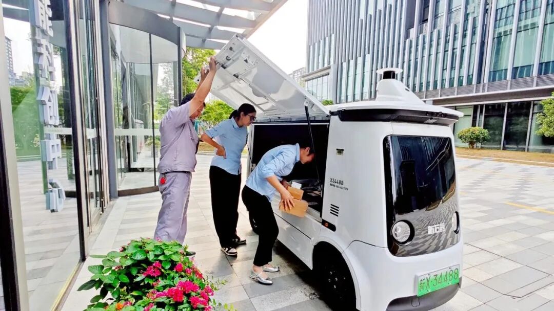 在实际配送中,快递先集中到园区零碳快递驿站,工作人员将其按楼宇分区放入无人车货厢并录入收件信息,随即无人车自动开往各楼栋,物业人员接到后台通知便可直接取件并分发至各企业,避免了多余的奔波和繁琐流程。“现在每个楼栋客服都可以直接从无人车取快递,在保障效率的同时,也省去了不少麻烦,特别是减少了快递员到处辛苦送件的现象,对园内交通秩序也有很大改善。”园区物业工作人员陆建介绍道。