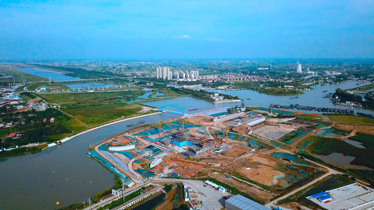 机械轰鸣、车辆穿梭……金秋时节,在京杭大运河与淮河入海水道交汇处,淮河入海水道二期工程的关键节点工程——淮安枢纽水上立交扩建工程施工正酣。通过挖宽泓道、培高堤防、新增30孔地涵,淮安枢纽行洪能力从2270立方米/秒提至7000立方米/秒,建成后将成为世界最大的水上立交工程。