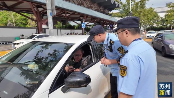 10月5日上午,在苏州火车站南广场网约车上客点,执法人员对营运车辆开展专项检查。为保障市民游客安全出行,假日期间,执法人员加强了对主要车站、景区、重点商贸区等区域的检查。
