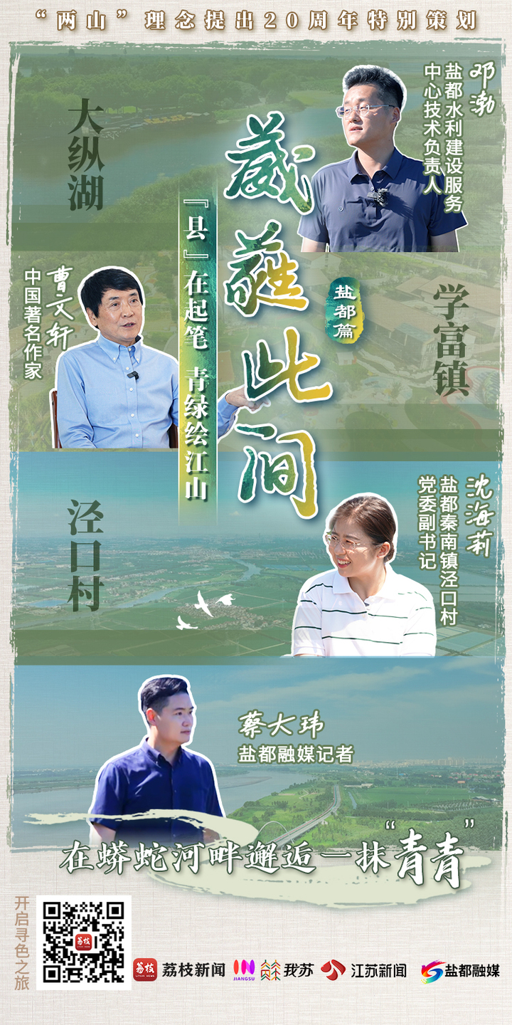 蟒蛇河,盐都人的母亲河,这片在孔尚任笔下曾浊浪排空的“万顷洪荒水”,在数十载的治理中,已是一幅鱼翻藻鉴、鹭点烟汀、波光潋滟、水天一色的壮美画卷。在蟒蛇河畔,中国传统色“青青”撞入眼帘——