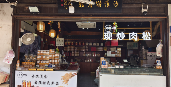 踏上苏州太仓沙溪古镇的青石板路,远远地,一阵焦香便牵住了衣角。花生糖的醇厚与肉松的油润缠绕交织,把人往那古朴的门头里引。凑近了看,小店玻璃罐里堆叠着蓬松的“绒团”,焦黄肉松揉拌成一处,芝麻海苔点缀其中,揭盖都是咸香酥脆的滋味。