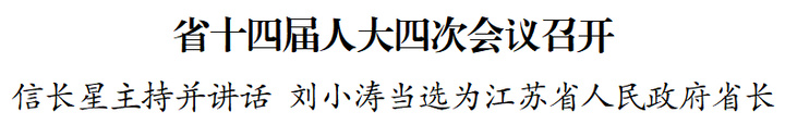 当选后,刘小涛作了讲话。他说,衷心感谢习近平总书记和党中央的关心关怀,衷心感谢各位代表和全省人民的信任支持,一定忠诚履职、勤勉工作,决不辜负组织重托和人民期盼。当前,全省上下正牢记嘱托、感恩奋进,以“走在前、做示范”的使命担当,满怀豪情推进中国式现代化江苏新实践。在这一重要时刻,接过这副担子,深感责重如山、使命如磐,一定在省委坚强领导下,团结带领省政府一班人,紧紧依靠全省广大干部群众,一张蓝图绘到底,以实干实绩向总书记和党中央,向各位代表和全省人民交上合格答卷。全力答好政治卷,深刻领悟“两个确立”的决定性意义,坚决做到“两个维护”,一步一个脚印把总书记擘画的“强富美高”宏伟蓝图变为更加可感可及的美好现实。全力答好发展卷,坚定扛好经济大省挑大梁的责任担当,因地制宜发展新质生产力,实打实为各类经营主体纾困解难,推动高质量发展继续走在前列。全力答好民生卷,自觉践行以人民为中心的发展思想,坚持在发展中保障和改善民生,着力解决群众急难愁盼问题,让人民群众在迈向共同富裕中生活更加幸福、心情更加舒畅。全力答好法治卷,坚持依法行政,增强政府公信力和执行力,主动接受各方面监督。全力答好清廉卷,坚定扛起全面从严治党政治责任,以身作则、严于律己,加强廉洁政府建设,让“为民、务实、清廉”成为政府工作人员的共同价值追求和行为准则。
