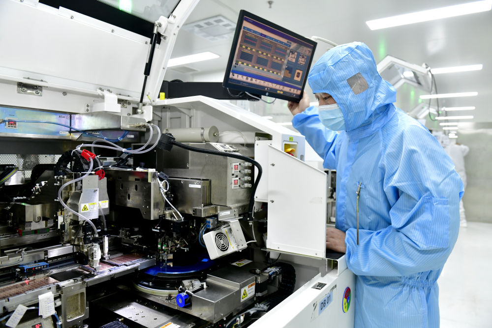 2025年2月13日,在山东一家电子有限公司,工作人员在生产线值守。新华社记者郭绪雷摄