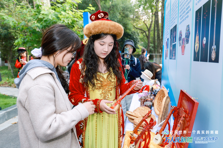 10月27日下午,“万人说新疆”走进江苏分享会配套活动——校园文化集市展在南京师范大学随园校区开展。据了解,此次校园文化集市展以“趣聚校园,奇遇天山”为主题,旨在通过丰富多彩的新疆文化展示与民俗体验活动,增进高校师生对新疆地域文化和民族风情的了解,促进苏新两地文化交流,展示一个更为真实、生动的新疆形象。