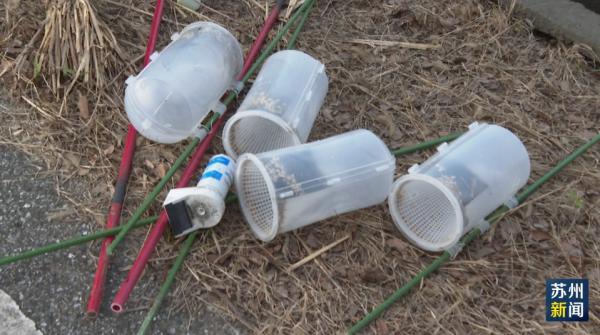 在望亭镇一片金色稻田旁,一个个捕虫器已经完成使命,即将从田里撤除。