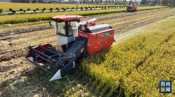 在推进绿色化生产方面,《行动方案》明确到2027年,全市主要农作物测土配方技术覆盖率达98%以上,绿色防控覆盖率达73%以上,重要粮食作物耕种收综合机械化率99%以上,特色农业机械化水平86%以上。在太仓双凤镇,无人收割机正大显身手。
