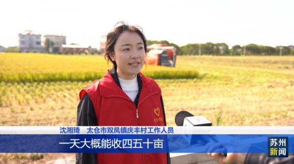 太仓市双凤镇庆丰村工作人员沈湘琦介绍,这台无人收割机的系统升级了,损耗减少了,一天大概能收四五十亩,可以媲美一名老机手,在接下来的秋收活动中,将用这台机器进行秋收。