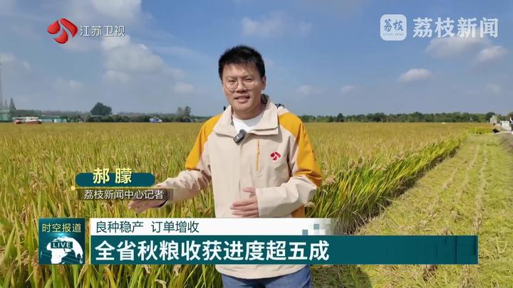 荔枝新闻中心记者郝朦说:“在盐城盐都的郭猛镇,这两天这里的水稻正在大面积开镰收割。今年这里种植的优良品种,被评为全国农业主导的水稻品种之一,产量如何?秋收时节,当地组织了全省高校、科研院所专家实地测产验收。”