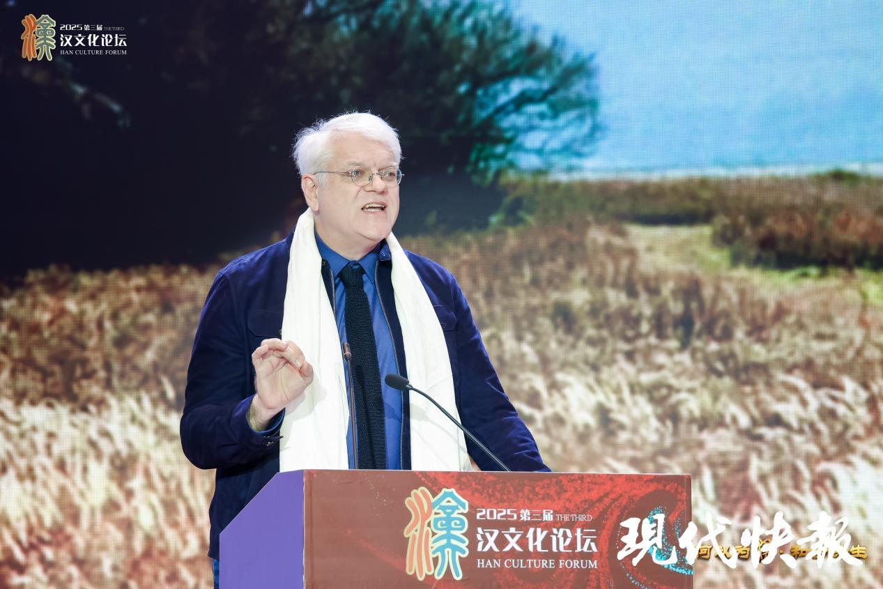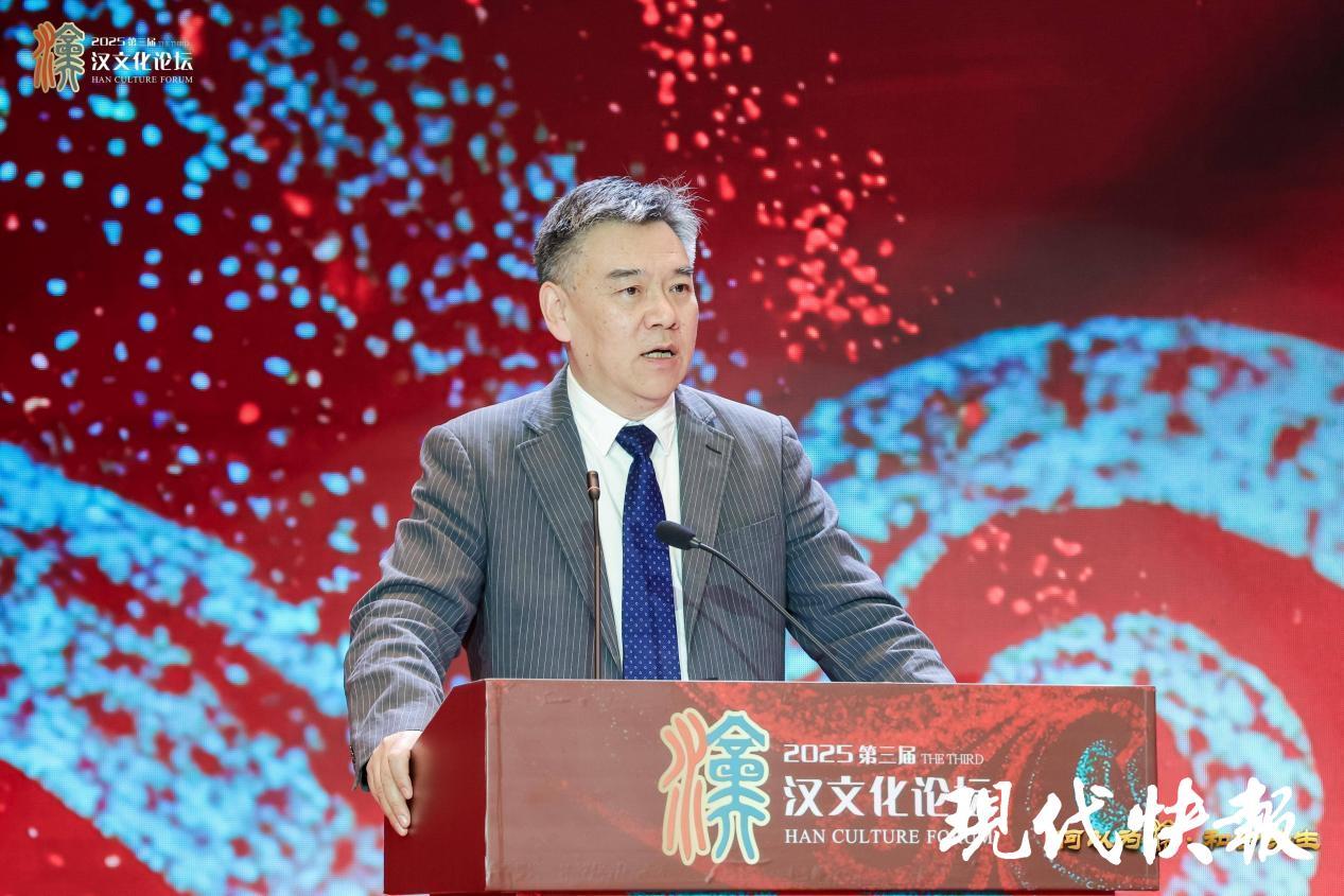 徐缨在致辞中说,本届汉文化论坛以“何以为汉·和合共生”为主题,聚焦数智传播、文明互鉴、文博考古、文脉传承等重要议题,既是深入学习贯彻党的二十届四中全会精神的具体行动,也是江苏打造习近平文化思想生动实践地的重要举措。江苏将以举办本次论坛为契机,持续深化两汉文化研究,大力推动文化传承发展,坚守根脉魂脉,推进自信自强,担当“探索新经验”的使命,让文化创新创造活力全面激发、竞相涌流。