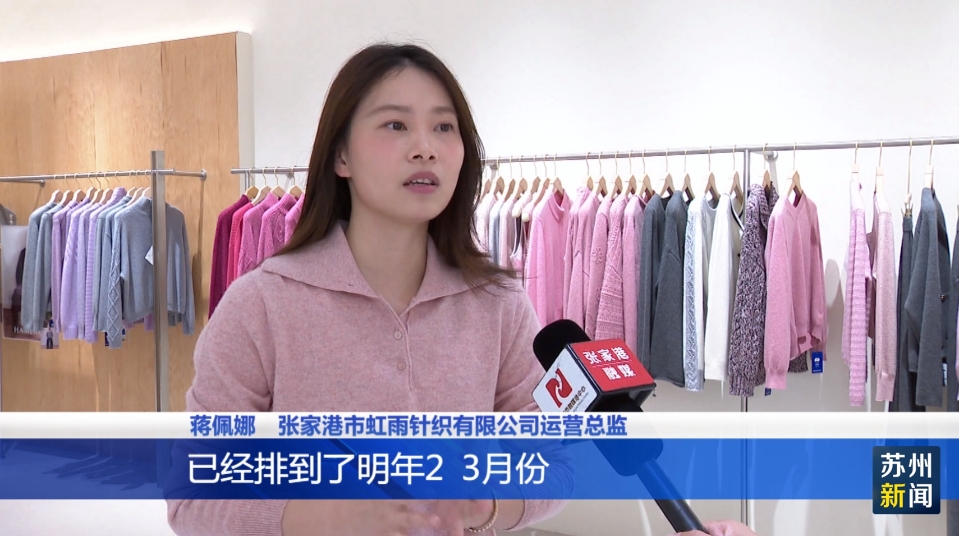 张家港市虹雨针织有限公司运营总监蒋佩娜介绍,现在工厂的订单已经排到了明年2、3月份,门店反馈销量、补单量都在急速上升。