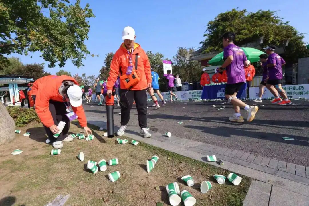 以太平门段为例,该路段是龙蟠中路、北京东路等重要路段的连接点,也是本次“南马”重要补给点。500米赛段两旁布满各式各样的补给物资,如水、纸巾、海绵等,环卫恢复压力巨大。