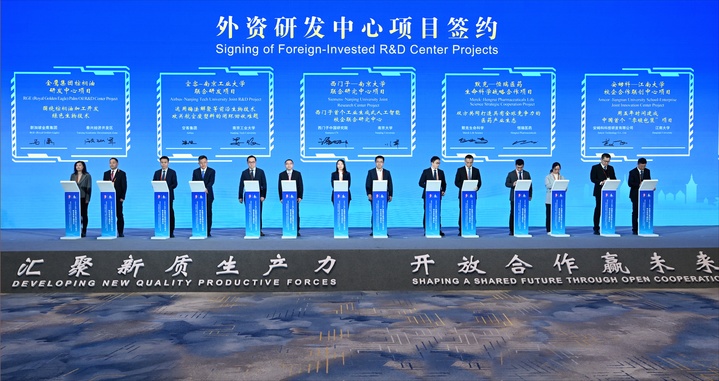 袁晓明致辞时表示,党的二十届四中全会对扩大高水平对外开放、开创合作共赢新局面作出战略部署。我们愿与各方分享中国超大规模市场红利,为全球产业链供应链稳定运行提供重要支撑,为外资企业深耕中国提供优质土壤。江苏产业集群丰富、辐射市场广阔,拥有一批高水平开放平台。商务部将一如既往支持江苏推进高水平开放和高质量发展。诚挚欢迎各国投资者抓住机遇,到中国、到江苏投资兴业。