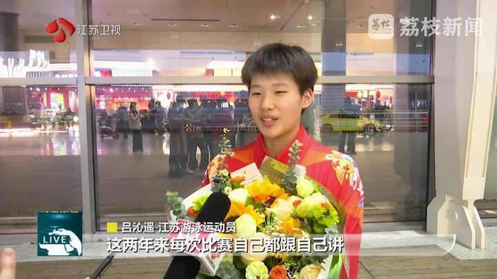 江苏游泳运动员吕沁遥说:“这两年来,每次比赛自己都跟自己讲,跟那些大哥大姐姐比赛不要怕,敢拼敢游就行了。下一步,我要好好训练,争取明年在亚运会舞台上面也能展现一下。”