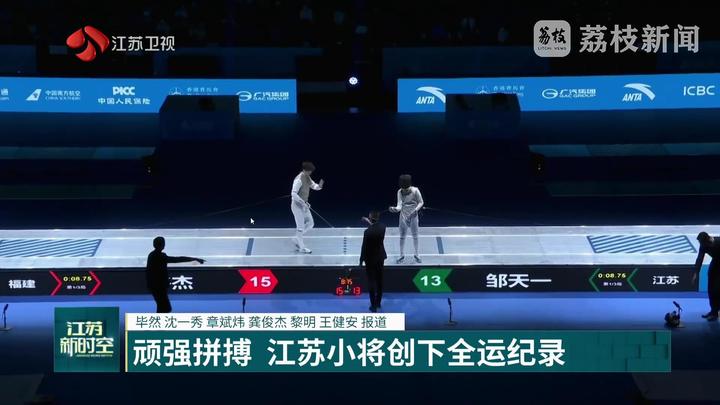 连日来,江苏健儿的拼搏身影闪耀全运会各大赛场。17日晚,在澳门进行的排球女子成年组四分之一交叉赛中,江苏队以3比0战胜辽宁队,成功晋级四强。在击剑赛场,15岁的江苏小将邹天一,一路过关斩将,最终斩获男子花剑个人银牌,成为全运会击剑史上最年轻的奖牌获得者。