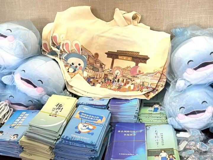 据了解,为了让课堂更具吸引力,扬州还推出形象IP“网信小蓝”——一只承载清朗网络使命的蓝色兔子,还以此IP设计年轻人喜爱实用的法治文创用品,如卡套、徽章、笔等,让网络保护理念更易被青少年接受。在新华中学的课堂现场,拿到“网信小蓝”系列文创的学生们爱不释手,纷纷表示要做阳光健康的“网络小达人”。
