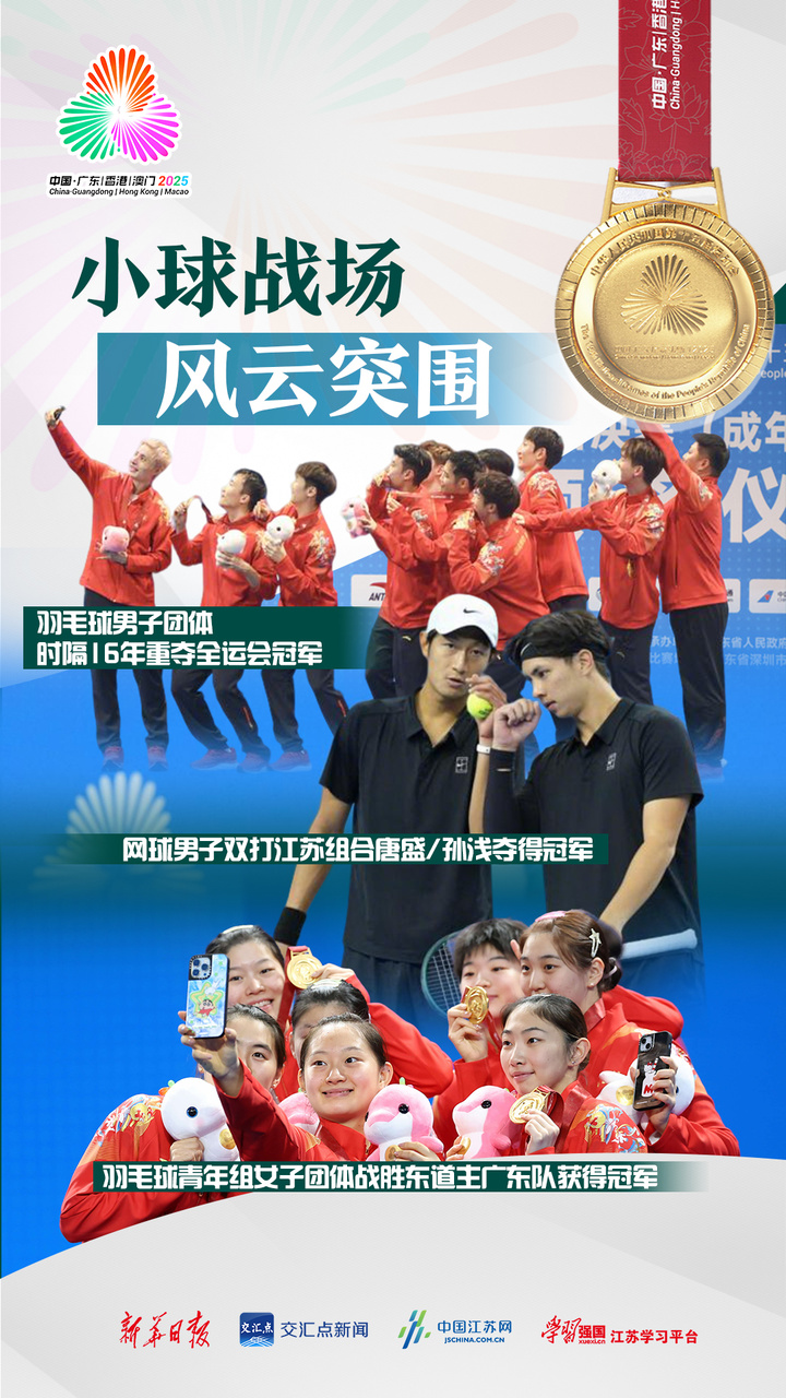今晚,第十五届全国运动会闭幕。江苏体育代表团在本届赛事中佳绩频传、亮点纷呈。无论是集体项目创下连冠新纪录、个人赛场不断实现奖牌新突破,还是传统强项持续领跑、新兴项目突围,每一个“首次”与“之最”都凝聚着汗水与泪水,镌刻下江苏体育不断超越、勇攀高峰的奋斗印记。10张图见证江苏健儿敢打敢拼的奋进之姿~