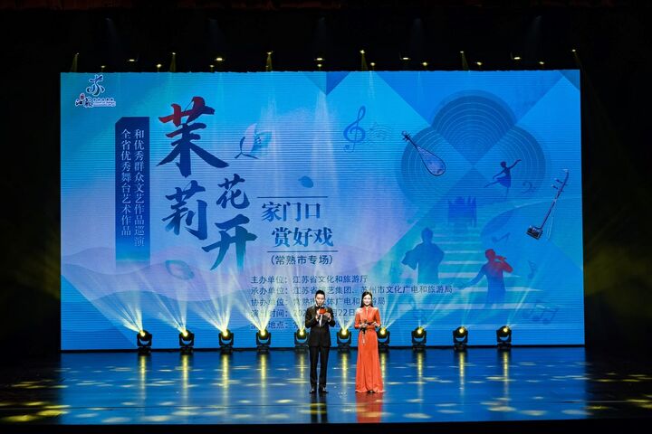 11月22日晚,由省文化和旅游厅主办的“茉莉花开·家门口赏好戏”——全省优秀舞台艺术作品和优秀群众文艺作品巡演(常熟市专场)在常熟声谷大剧院举行,为贯穿全年的“茉莉花开·家门口赏好戏”巡演活动画上了一个圆满句点。自今年2月以来,活动在省内巡演813场,实现全省95个县(市、区)和718个乡镇全覆盖,将一场场优质演出“打包”送至百姓家门口,覆盖线上线下观众超百万人次,在江苏大地上深情书写着“优质文化资源直达基层”的动人篇章。