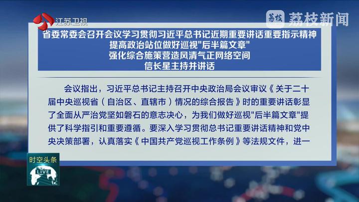 会议指出,习近平总书记主持召开中央政治局会议审议《关于二十届中央巡视省(自治区、直辖市)情况的综合报告》时的重要讲话彰显了全面从严治党坚如磐石的意志决心,为我们做好巡视“后半篇文章”提供了科学指引和重要遵循。要深入学习贯彻总书记重要讲话精神和党中央决策部署,认真落实《中国共产党巡视工作条例》等法规文件,进一步提高政治站位,自觉从政治上看、从政治上抓、从政治上改,层层压紧压实责任,动真碰硬抓好巡视整改,持之以恒推进全面从严治党,以实际行动坚决做到“两个维护”,推动高质量发展取得实实在在成效。