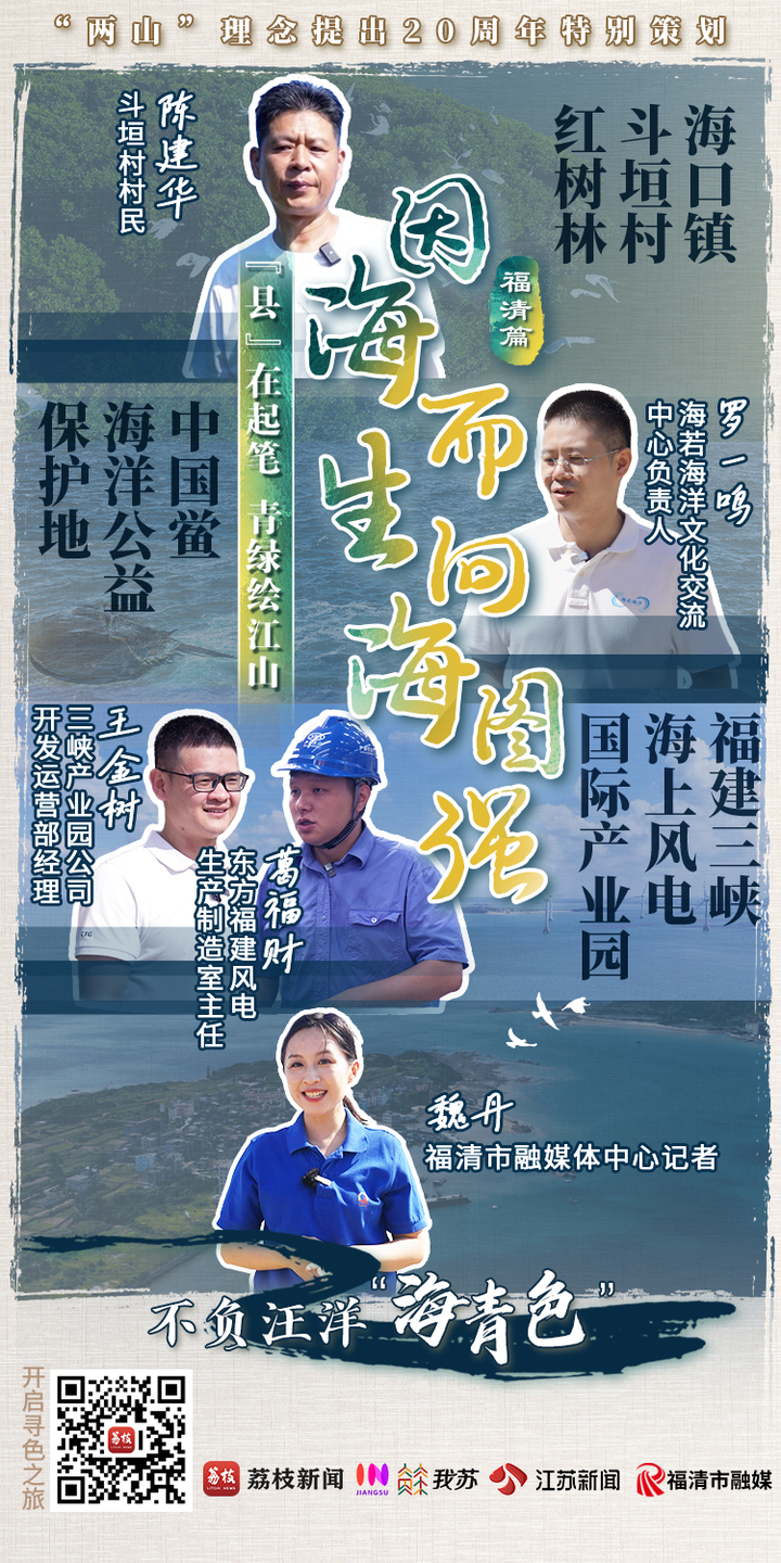 在这里,红树林以蔓延的绿意,在滩涂间织就生态屏障;在这里,我国渔民首次自主延长休渔期,守护珍稀的中国鲎繁衍生息;在这里,全球最大的26兆瓦级海上风力发电机组破浪而出,为发展注入澎湃绿能……“人海和谐”的福清实践,正在诠释着一抹澄澈深邃的中国传统色——海青。
