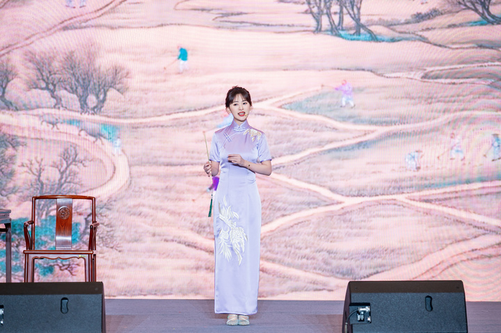 “说苏州来道苏州,姑苏盛景冠江南。山塘七里灯如昼,阊门内外罗绮鲜。哎呀哎呀,阊门内外罗绮鲜。”苏州评弹演员王宇南身着旗袍,挥着扇子,唱着小曲,将江南的温婉与柔情传递给每一位观众。“苏州评弹历史悠久,传承不绝。它形成于明末清初,尤其自乾隆以后日臻丰满,书目繁盛,名家辈出。在我看来,作为传统曲艺,苏州评弹既要守住文化根脉,更需在时代语境中找到创新密码。期待更多的人关注苏州评弹、了解苏州评弹、爱上苏州评弹。”王宇南说。