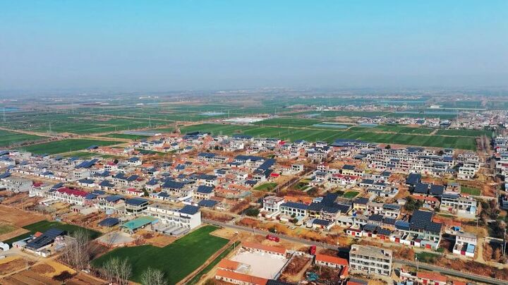 徐州市新沂双塘镇双井村的屋顶上,光伏板在阳光下闪闪发光,远远望去好像一片蓝色的海洋。这里是江苏省首批农村分布式光伏整村开发试点村之一。