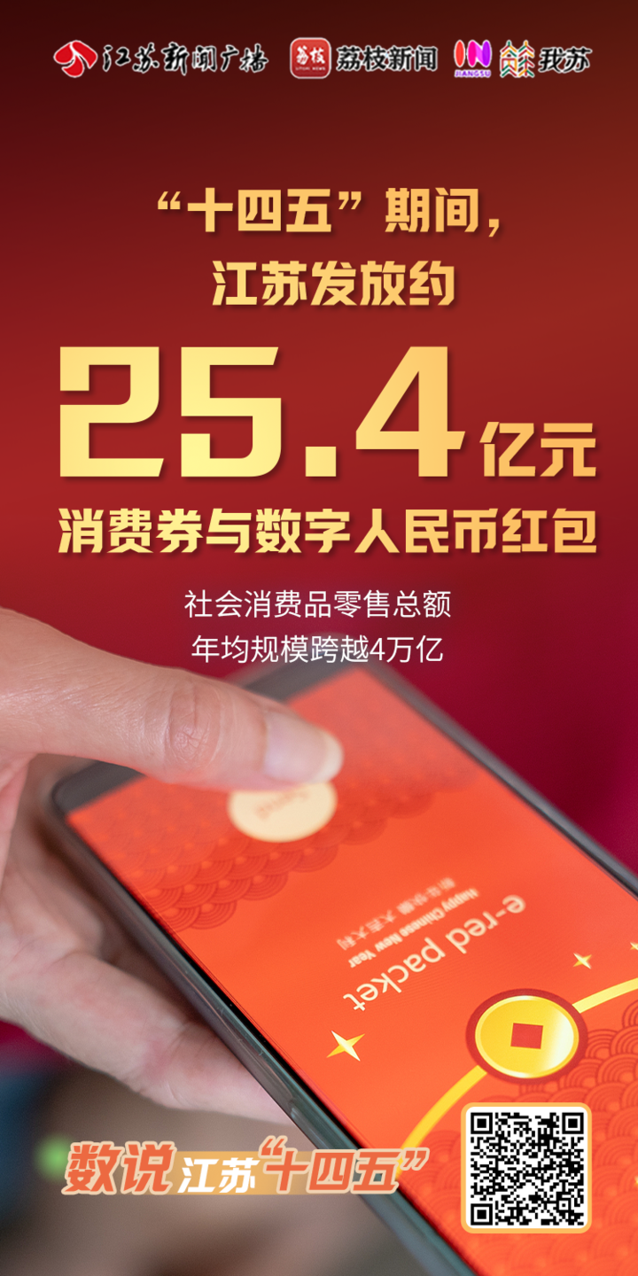 消费在国民经济中处于基础性地位,是经济增长的持久动力。“十四五”期间,江苏突出活动引领,“苏新消费”更有声量,累计举办1.2万余场消费促进活动,发放约25.4亿元消费券和数字人民币红包,社会消费品零售总额年均规模跨越4万亿台阶,为全省经济高质量发展提供了有力支撑。