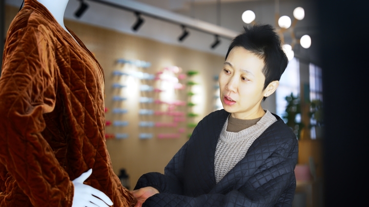 这份看似随性的尝试,实则是俞金键的深思熟虑。从设计团队反复打磨款式到面料研发,这些年更是推出天然蜂胶真丝、植物染面料等创新产品,桑罗始终以国际审美为风向标。“有时候我觉得她选的颜色太另类了,没想到过两年国际上就流行这个颜色了。”王春花对女儿的超前眼光很是赞叹。2017年,俞金键带着桑罗品牌首次亮相国际展会,产品一举销往全球多个国家和地区。“桑罗创立第四年就赚钱了,我说‘哎呦,你了不起’!”王春花的语气里满是对女儿的认可。
