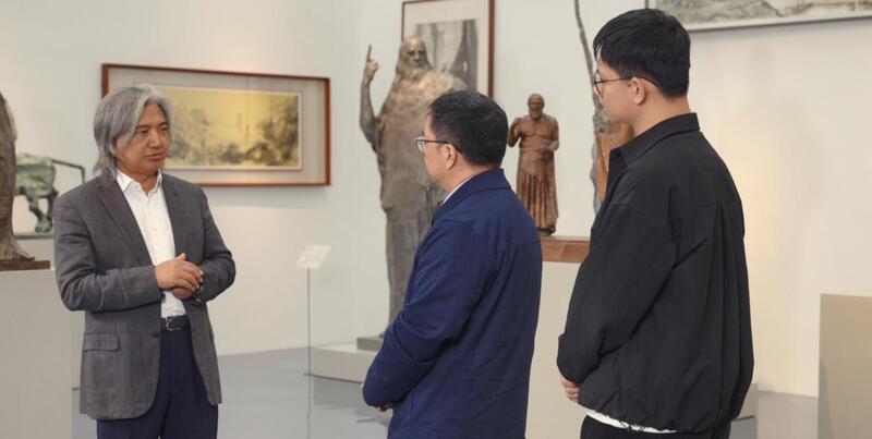 著名雕塑家吴为山与南京大学雕塑艺术研究所所长尚荣、南京大学博士生李泉沂畅谈关于艺术与技术的思索