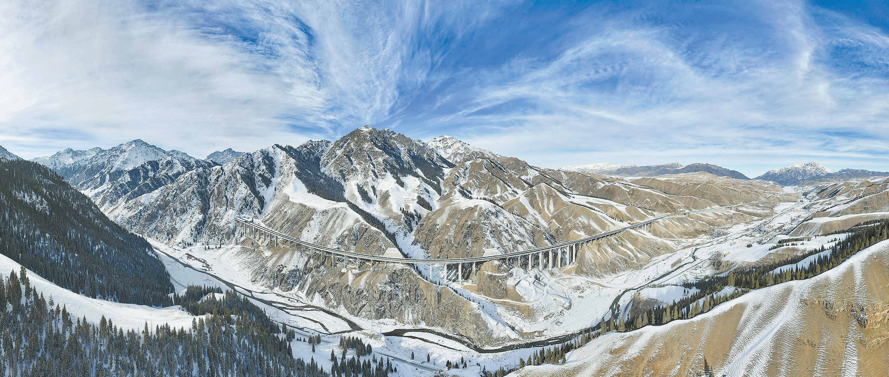 世界最长高速公路隧道——天山胜利隧道及其所在的G0711新疆乌鲁木齐至尉犁高速公路(简称“乌尉高速”)即将实现全线通车。届时,天山以北的乌鲁木齐至天山以南的库尔勒的通行时间将从7小时缩短至3小时左右。图:桥隧相连的乌尉高速公路穿越天山山脉。