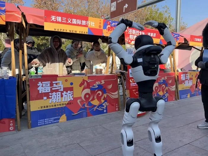 新年伊始,梁溪文旅市场迎来开门红。2日,惠山脚下的映月里街区人声鼎沸,梁溪映月里“福马·潮旅”市集正式启幕。AI机器人灵动起舞、快闪表演轮番上演,旅行社超值线路、酒店特价套餐琳琅满目,线上直播间福袋不断,这场集实惠与趣味于一体的文旅盛宴,让市民游客在欢声笑语中开启新年文旅新篇章。