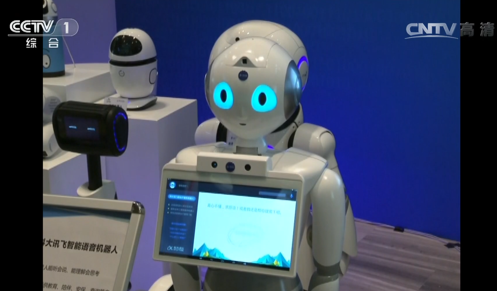 △2016年4月26日,习近平总书记考察中国科技大学。这是与总书记互动的机器人“小曼”。(视频截图)