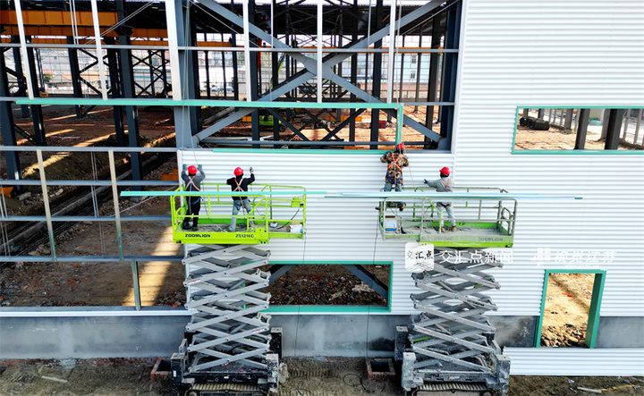 1月9日,位于海安高新区的振强重型矿山机械智能制造扩建项目工地,建设者在进行钢结构厂房外立面和行车横梁施工。项目建成后,可年产重型矿山机械120台(套)。顾华夏 摄视觉江苏网供图