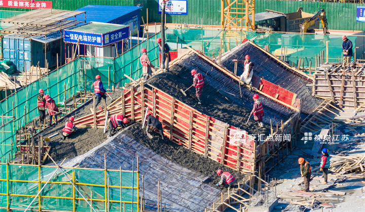 1月8日,建设者在宿迁市宿豫区新庄镇一文旅项目建设现场加紧施工,有序推进项目建设。徐瑞摄视觉江苏网供图