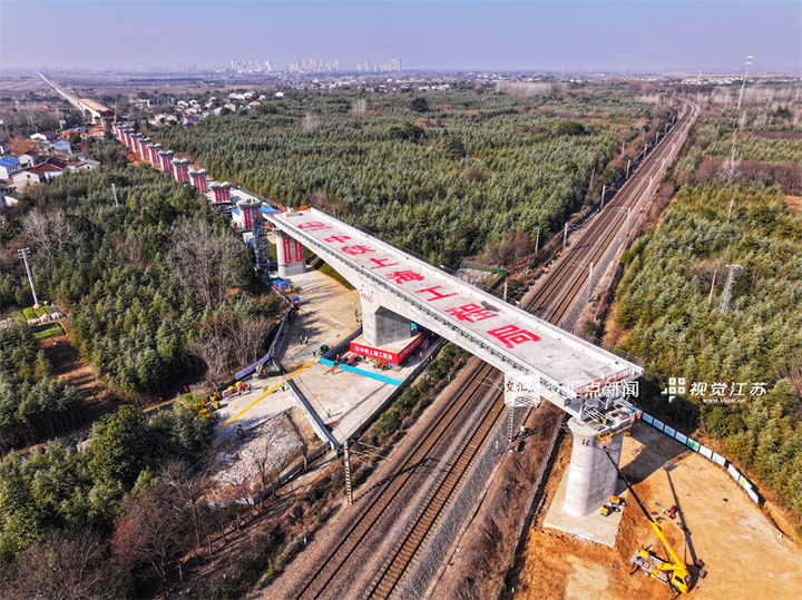 1月7日,新建上海至南京至合肥高速铁路南京特大桥建设取得重大突破,总重达6300吨转体梁经过60分钟逆时针旋转60度后,成功跨越京沪铁路运营干线,实现精准转体,为后续箱梁架设打通关键通道。通讯员刘忠云新华日报·交汇点记者赵亚玲摄