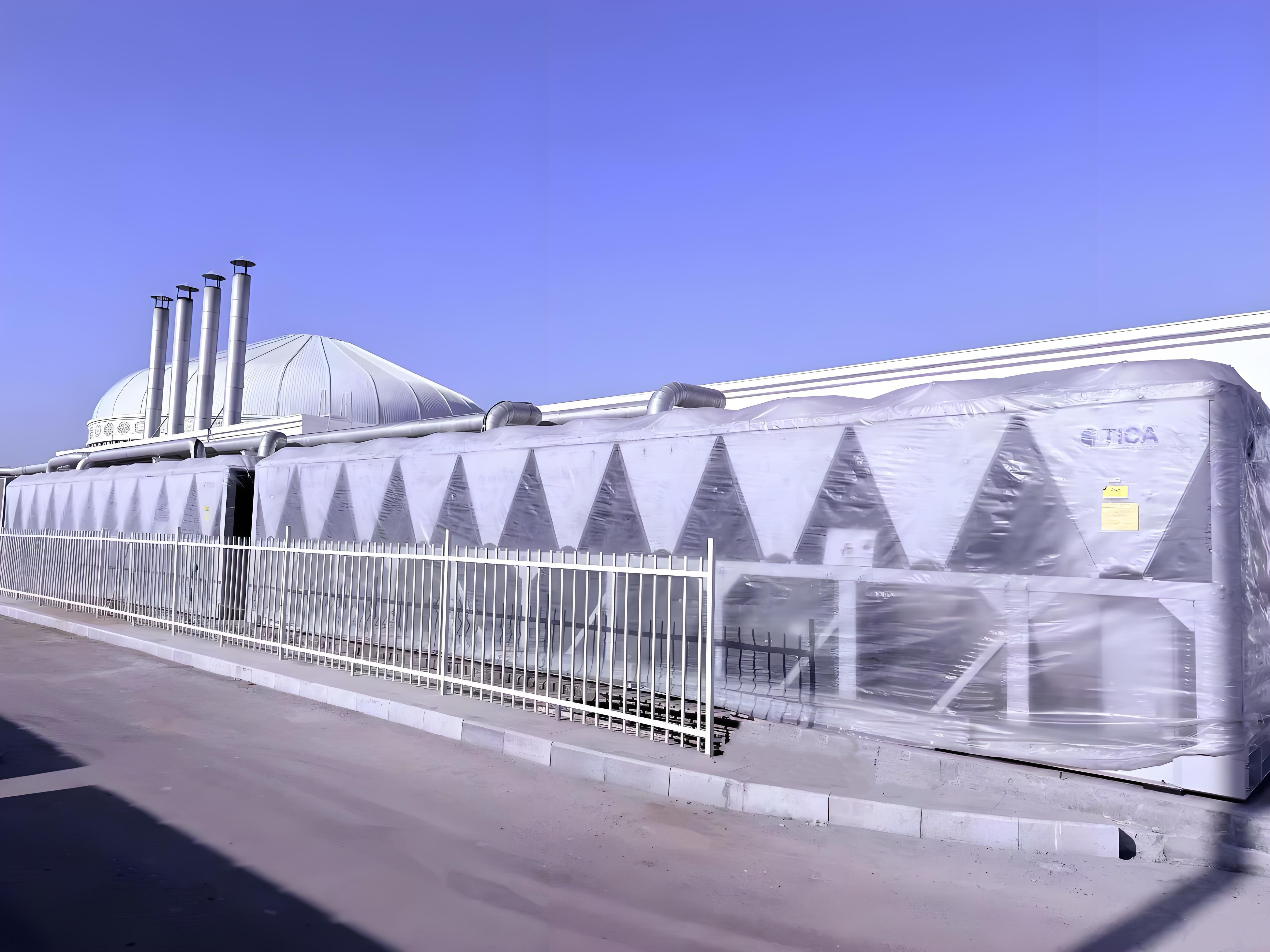 在详细了解客户需求后,天加团队在产品中引入了“经济器”。天加海外欧洲事业部总裁郭喜锋打了个比方,这个部件的作用如同汽车的“涡轮增压器”,能够通过优化冷媒循环路径,在压缩机耗电量不变的情况下提升制冷效率。“普通空调系统像单车道,而我们的设计像是开辟了一条辅助快车道。在不增加输入功率的前提下,让压缩机每消耗一度电,能‘榨出’更多的制冷量。”郭喜锋说,这一改变使产品整体能效提升接近10%,比其他竞争对手高出3%—5%。同时,他们还为压缩机增加了专用隔音箱,并采用22台变频风机,配上消音箱,提供强劲“冻”力的同时,使整机噪声降低约4分贝,最终成功中标。