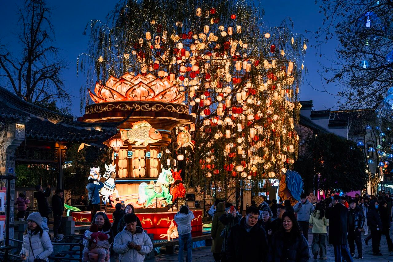 从“灯树”到即将完工的巨型生肖飞马灯,老门东的灯彩艺术都是传统扎制工艺与现代光影技术的结晶。运用LED编程、动态光影等手段,让静态的花灯“活”起来,创造出更富感染力和互动性的视觉效果,精准契合了当代游客,特别是年轻一代的审美与分享需求。这也解释了门东的灯组能年年引爆话题,而非一次性消费的“网红”。