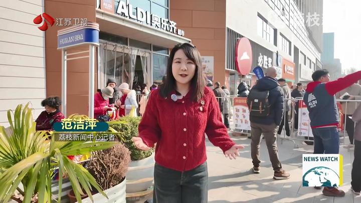 荔枝新闻中心记者范洁萍说:“看这人气!这家德国百年品牌的平价超市首次登陆南京,今天四店齐开。优惠的价格、优质的商品,吸引了很多市民一大早就来排队。”
