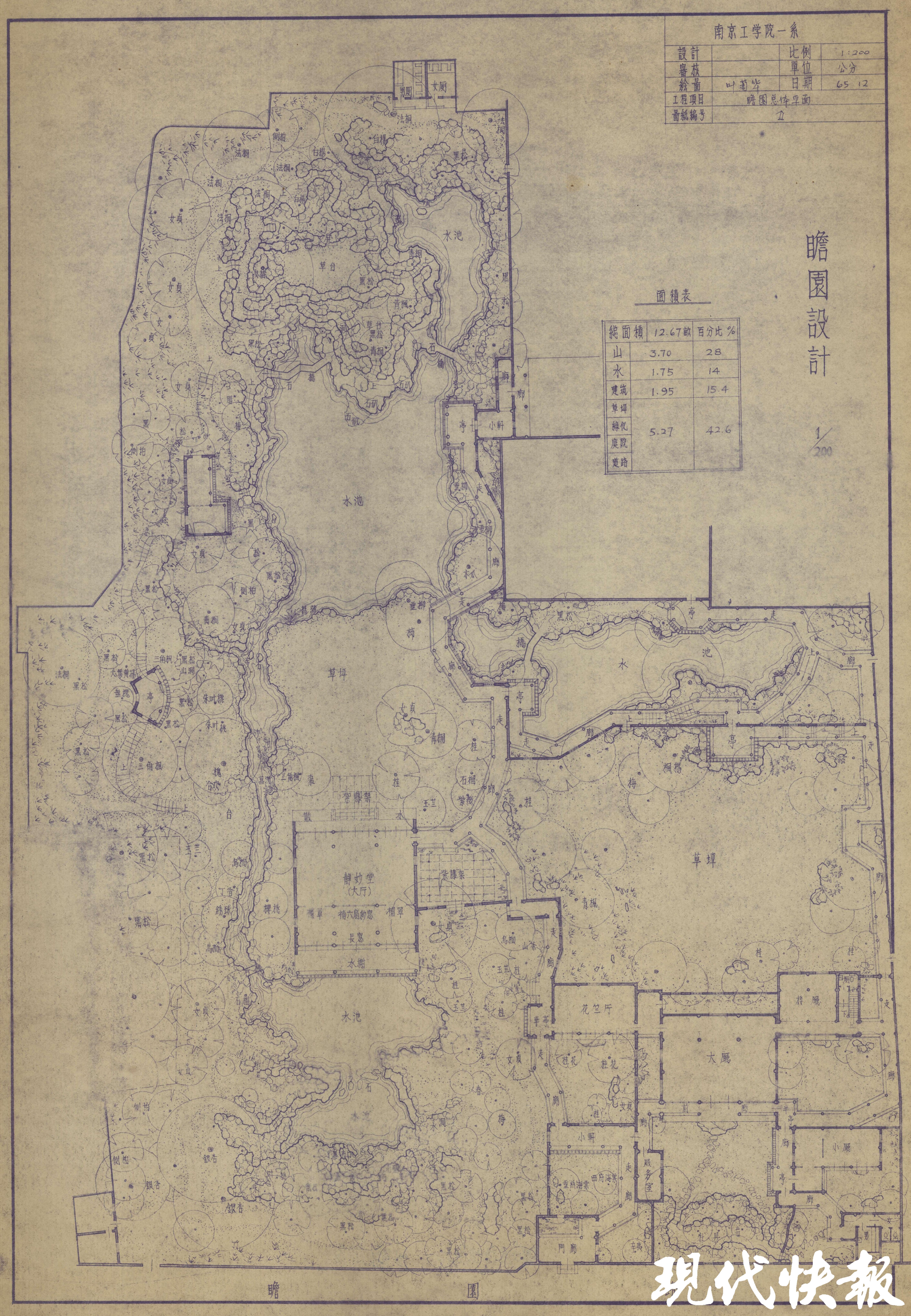 1965年,瞻园设计图(图片来源:叶菊华捐赠)