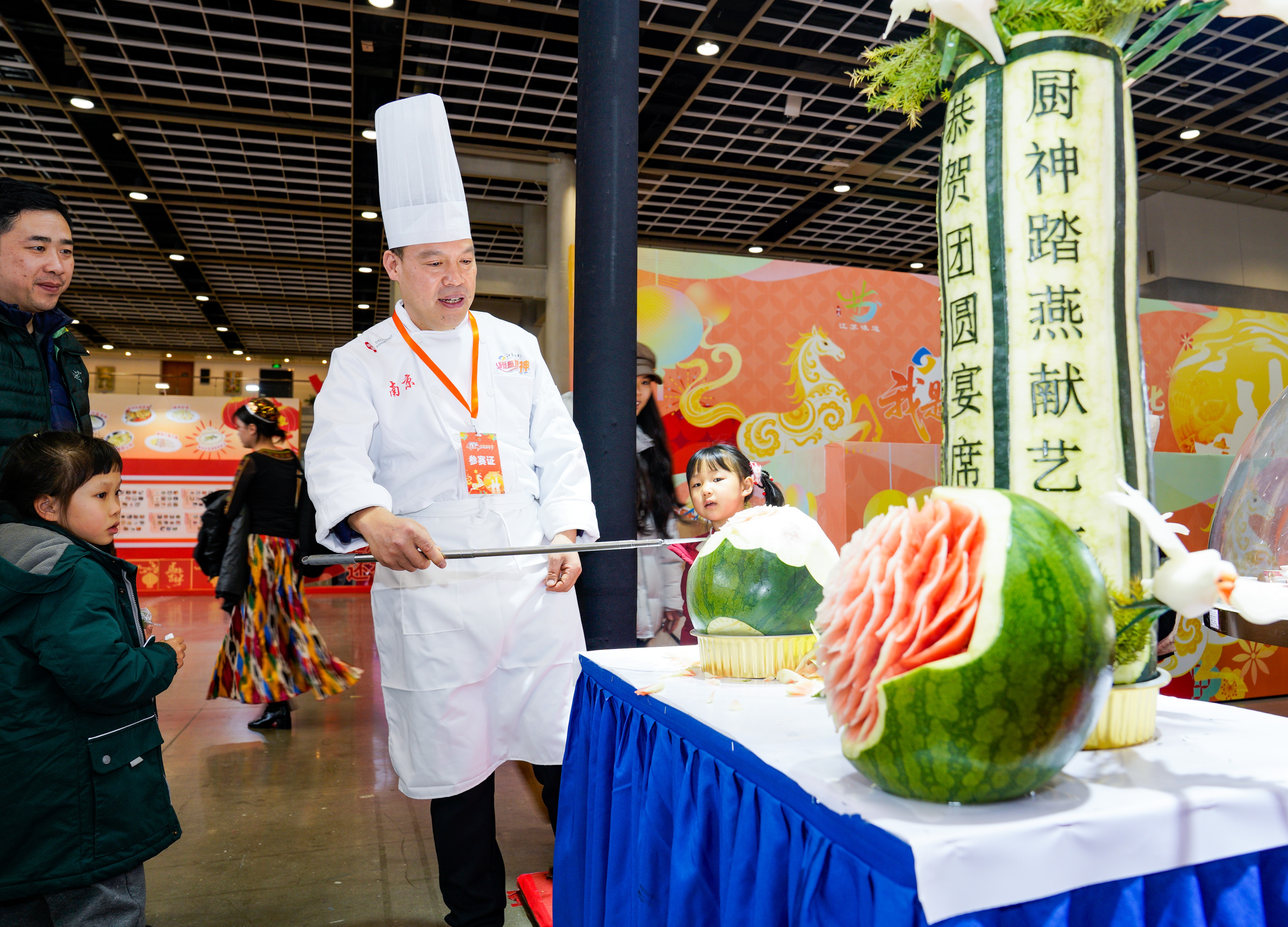 “民间厨神”展区还设置了大师年夜饭教学区,特邀中国烹饪大师朱云龙、纵兆敏坐镇,打造高品质美食大师课,让市民在家就能做出星级年夜饭。两位大师深耕烹饪领域数十年,现场设置教学、演示、品鉴一体化环节,市民不仅能近距离观摩大师烹饪全过程,聆听大师分享的烹饪心得与年味饮食文化,更能现场品鉴大师亲手制作的美味佳肴,沉浸式感受星级厨艺的魅力。