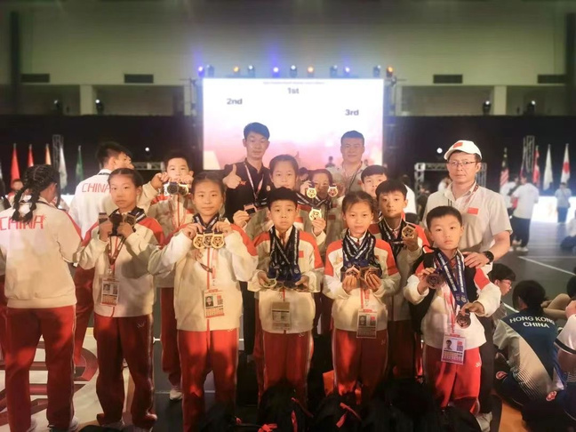 最初是县级比赛,随后是市赛、省赛。随着成绩逐步稳定,孩子们站上了全国赛场,并在近两年走出国门,参加亚洲级别的赛事。