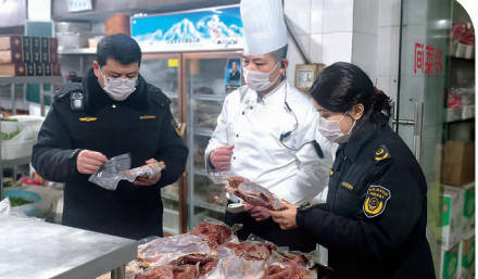 (□侍敏孙建)民以食为天,食以安为先。春节将至,为切实保障广大人民群众饮食安全,连日来,海州区市场监管局聚焦辖区年夜饭承办单位,围绕“经营场所环境卫生、从业人员健康管理、食材采购查验与贮存、加工制作、明码标价”等重点环节开展了全面排查,筑牢食品安全“防火墙”,守护老百姓舌尖上的年味。